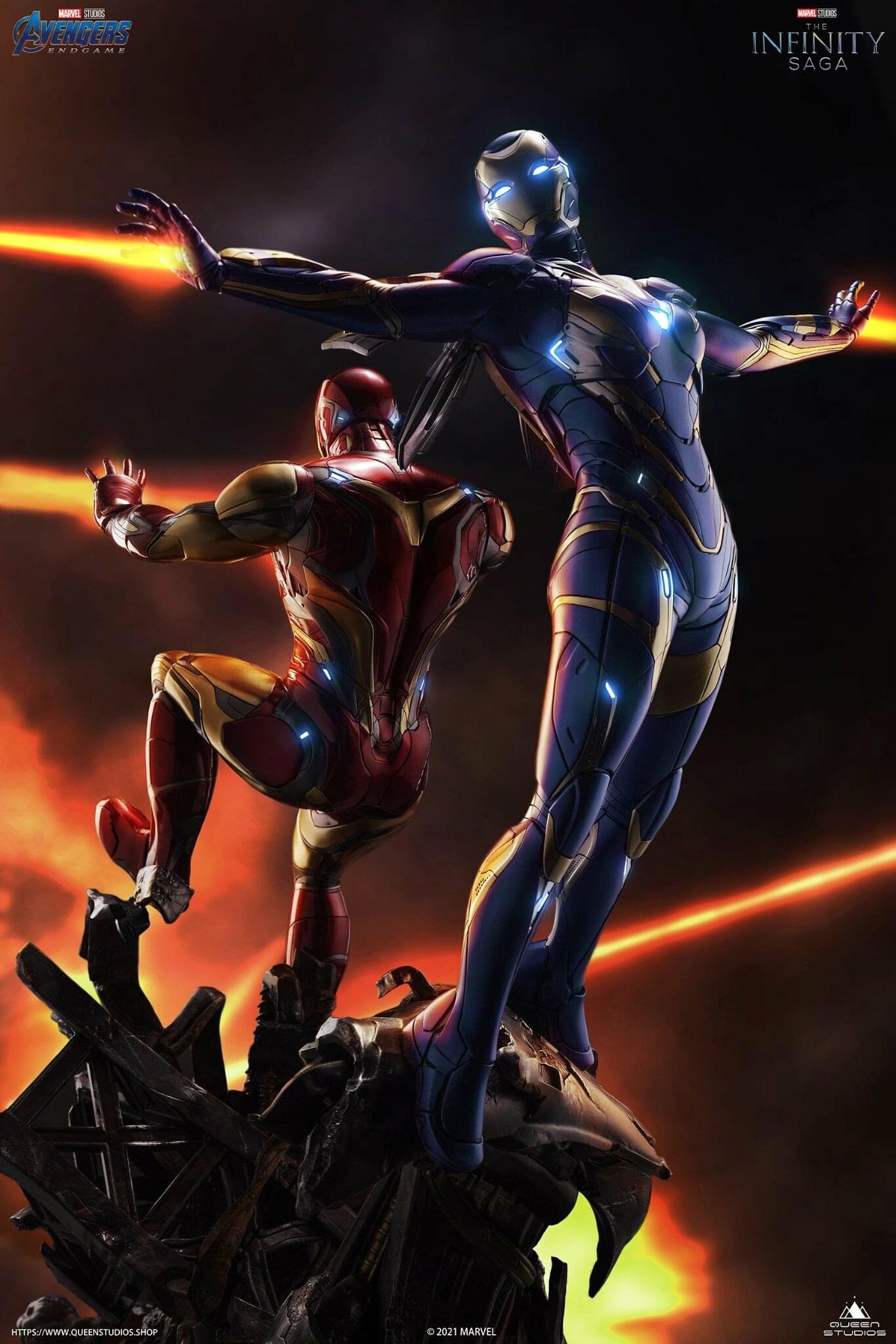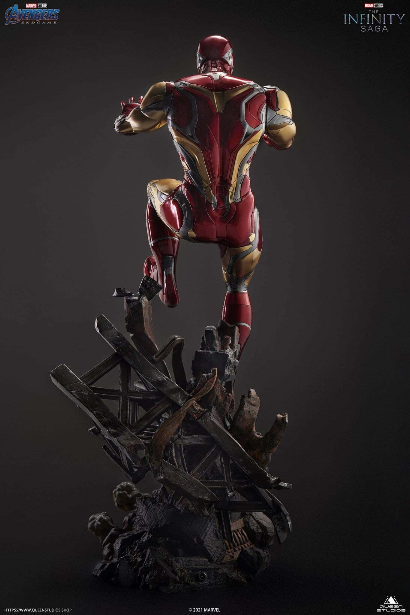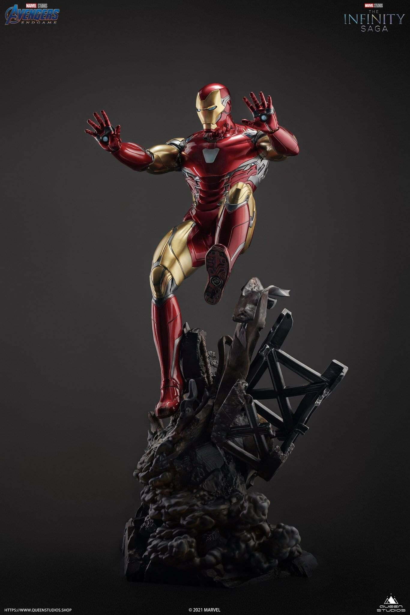 The Queen Studios’ 1/4 scale Mark 85 statue recreates Tony Stark’s final armor from Marvel Studios’ Avengers: Endgame. The team have chosen one of the most iconic poses from Stark’s final battle as Iron Man. In this scene, we see Tony back to back with Pepper Potts who joins him in battle in her “Rescue” armor. Iron Man is leaning away from a pile of broken steel and debris. His palms face fowards as he uses his repulsors to stabilize himself, back to back the two heroes fight together in one of the most memorable moments from the incredible saga.