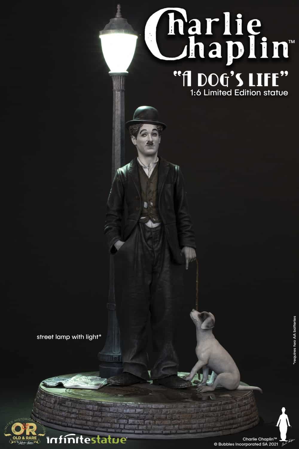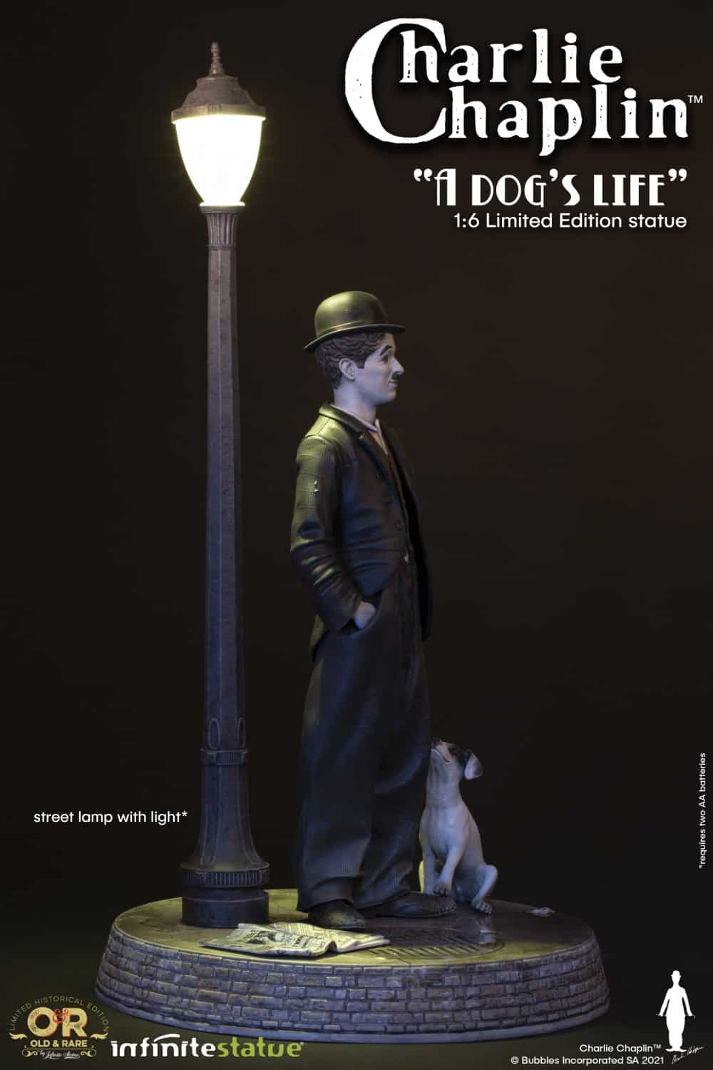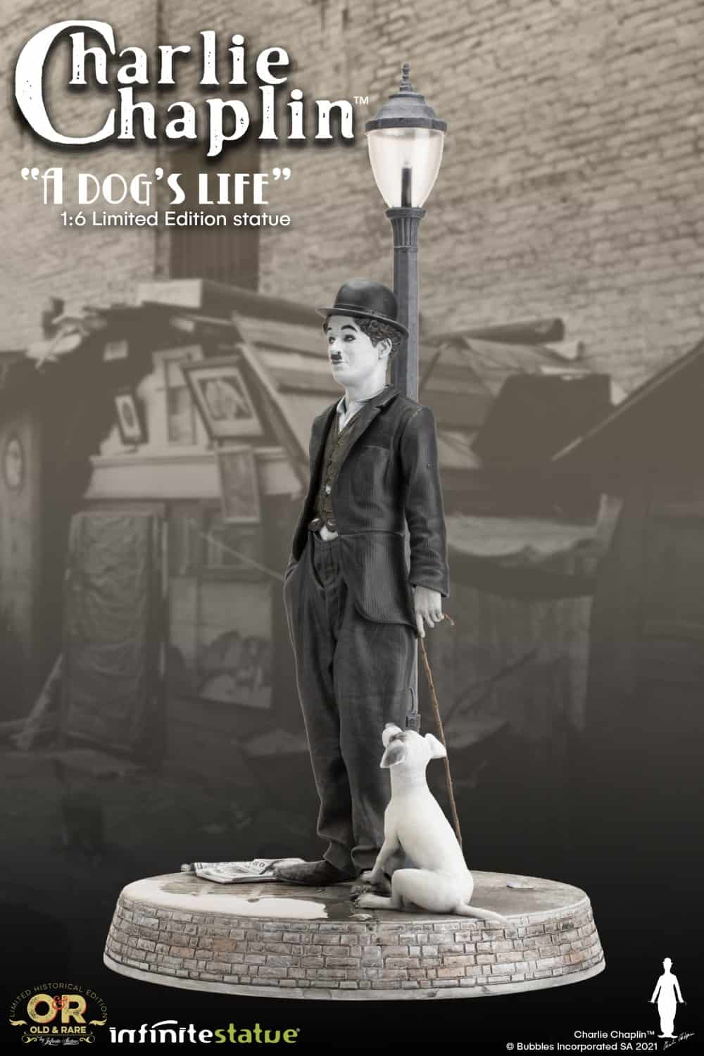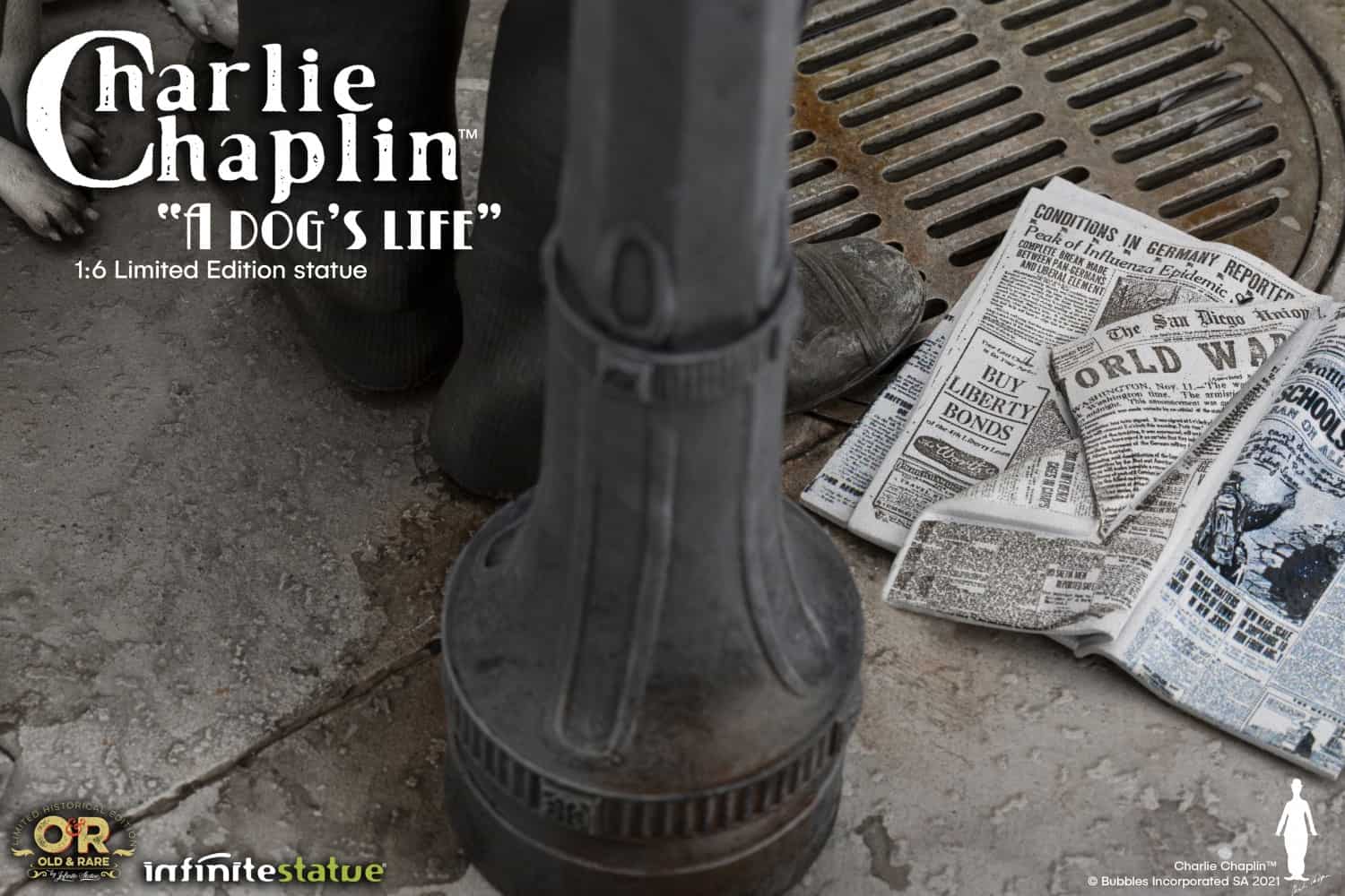 Infinite Statue takes inspiration from one of Chaplin’s masterpieces, the film “A Dog’S Life“, and creates this wonderful sculpture. Charlie Chaplin A Dog’s Life limited-edition is the new resin statue of the line Old & Rare, dedicated to the great artist.