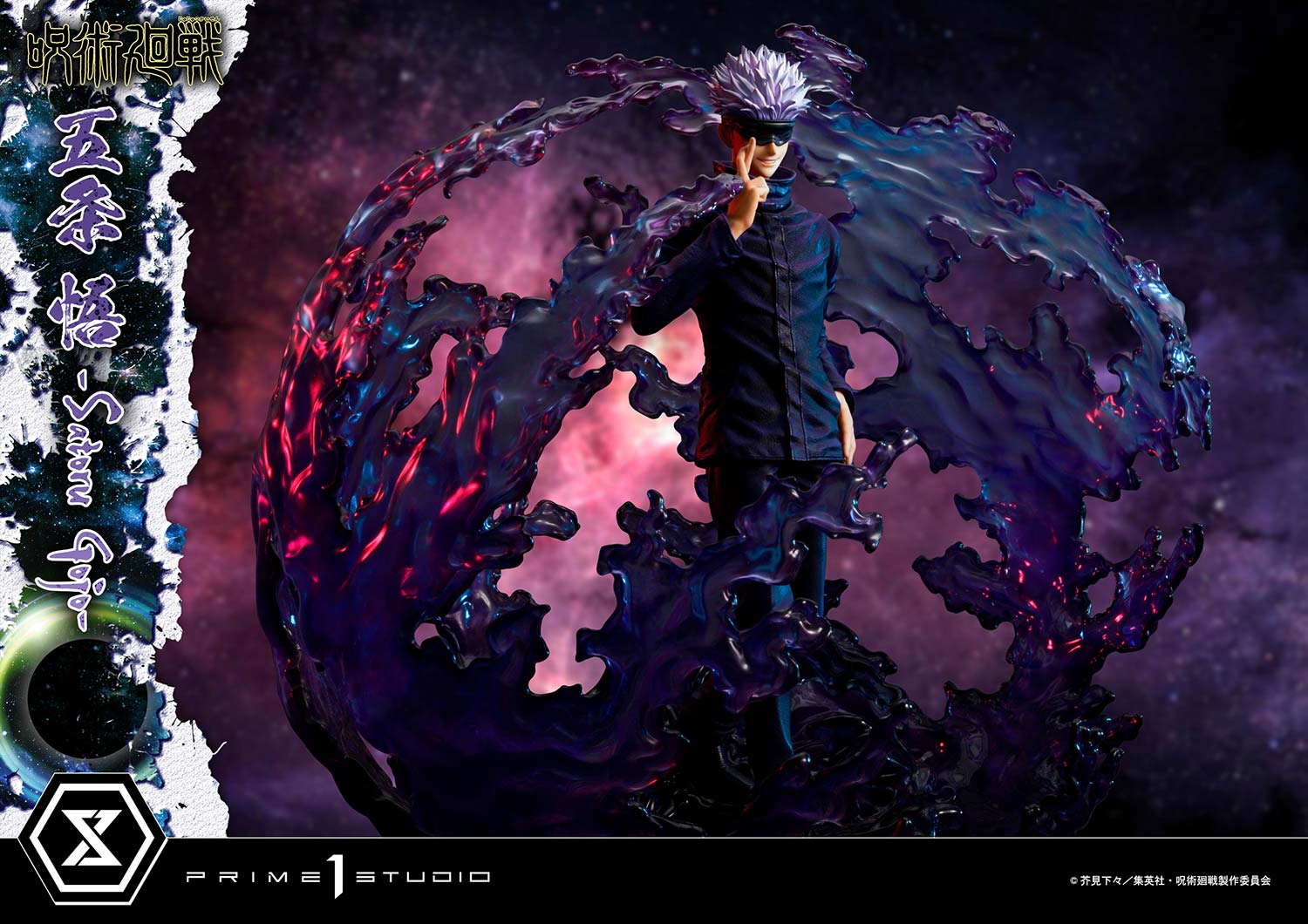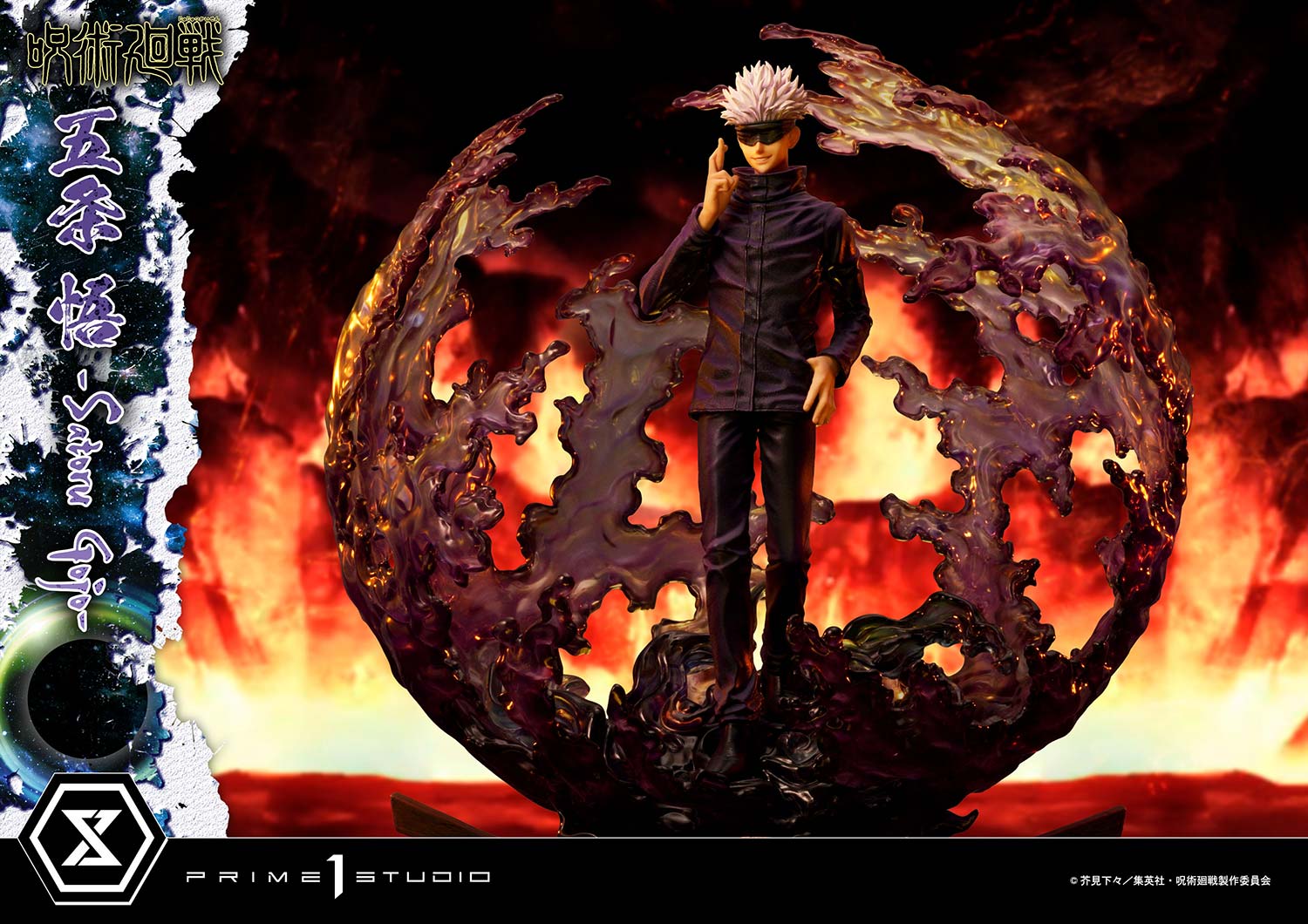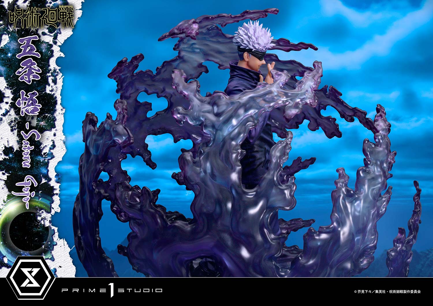 Satoru takes a step forward on a Jujutsu Kaisen-themed base as purple magic energy slowly vibrates and gathers, forming a menacing sphere all around him. The Infinite Void is about to expand at any second!