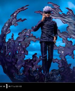 Standing at almost 19 inches tall, Satoru Gojo is ready to unleash his fearsome Domain Expansion upon his opponent. Domain Expansion is a rare and extremely powerful ability that very few jujutsu sorcerers possess. It requires a very profound understanding of their own magic and the ability to control and manipulate the surrounding environment. Satoru here, being the sorcerer prodigy that he is since a very young age, already knows that his opponent is in for a very good treat! With a sly smirk and a relaxed composure, Satoru dons his slim-fitted dark blue, high-collar jacket and his simple black blindfold. Casually casting his Domain Expansion ability, his right fingers are crossed, and his left thumb casually slipped inside his pocket, nothing can ruin this man’s day.