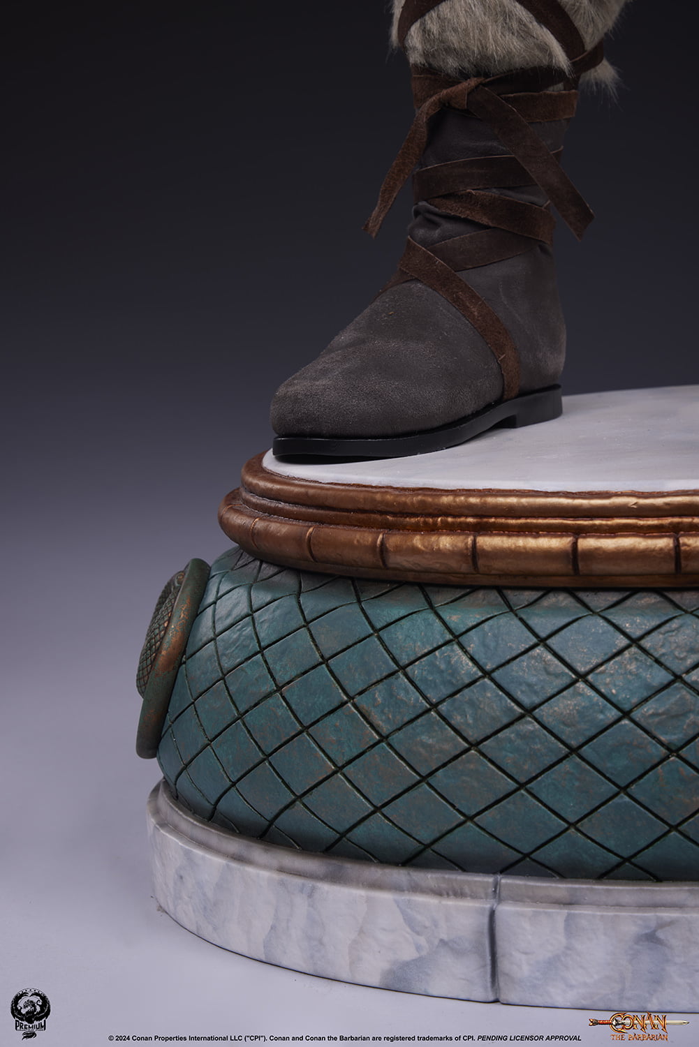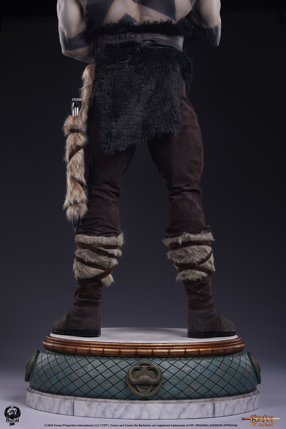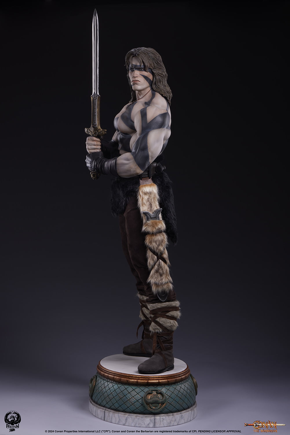 Clutching the Atlantean sword with both hands before him, every muscle in Conan’s body appears ready for the next challenge that awaits him. The beautiful paint work on the statue emphasizes the expertly sculpted musculature of this larger than life warrior. The Warpaint Edition sports a unique deco and museum style base paying homage to the fan-favorite scene in which Conan and his allies infiltrate the temple of the villainous Thulsa Doom. The stark contrast of the white and black body paint adds an even greater sense of drama to this already imposing statue. The Temple base is decorated with snake emblems and marble like finishes.