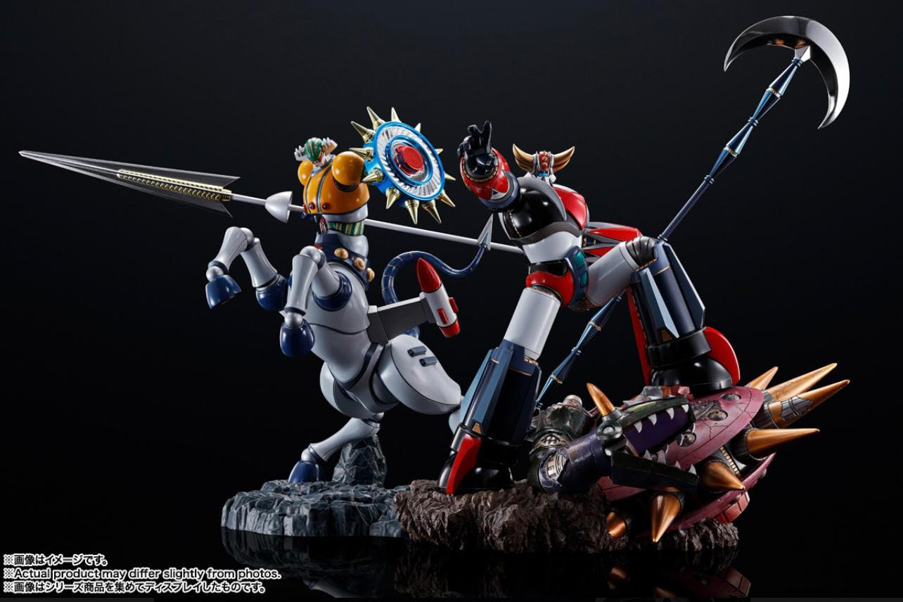 The heroic figure of Grendizer can only be recreated with Figuarts Zero Touche Métallique! Grendizer stands tall atop the fallen yen Beast, staring down even more enemies with a powerful sculptor, Tomonobu Fuchi, who has recreated this statue with impressive sculpting skills. His deadly weapon, the Double Pike, is plated.