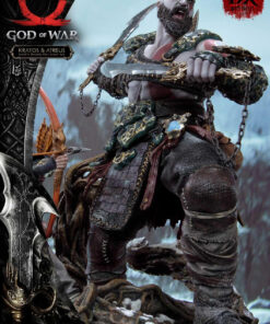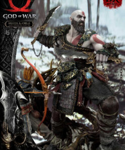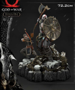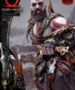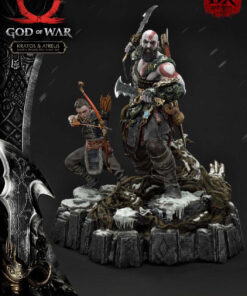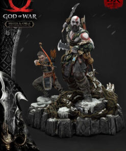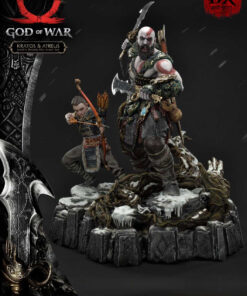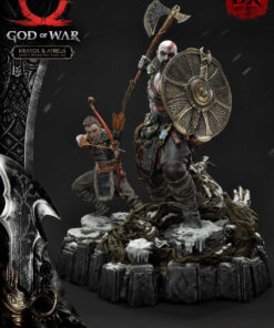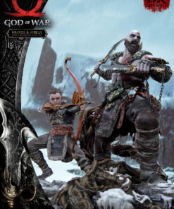 The Kratos & Atreus Statue stands approximately 28.5 inches tall and features the highly detailed bodies covered in the New Ancient Armor Set. The equipment is made with accuracy and precision. A LED light up function is added in Mimir’s eyes.