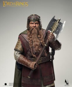 This highly detailed figure captures Gimli’s rugged presence with rooted hair and beard, articulated eyes, and an impressive range of weapons and accessories.