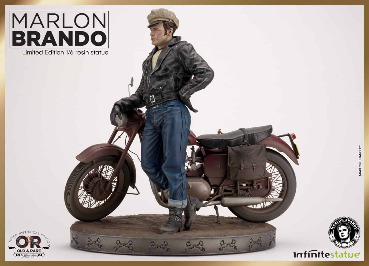 Infinite Statue pays tribute to the wild and rebellious Marlon Brando with this extraordinary 1/6 scale resin statue. One of the most famous images of 50s cinema transformed into an exclusive 3D masterpiece for our line Old & Rare.