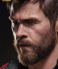 This 1/1 scale life size bust is inspired by Thor from Marvel Studios’ Avengers: Infinity War. The bust stands at 73cm tall and captures the God of Thunder with movie accurate body armor, short blonde hair, and trimmed beard. Created using state of the art technology and the finest materials, the Queen Studios team have spent countless hours on the head sculpt to capture the characters likeness with breath taking accuracy.