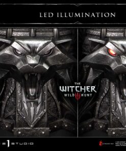 The base, inspired by the School of the Cat, features a slain Wild Hunt hound and the glowing red eyes of the cat, illuminated by LEDs, drawing you into the world of the Northern Kingdoms.