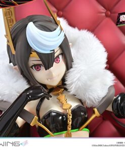 The throne she rests upon is an original PRISMA WING design. The armrests feature a lion’s fierce gaze, the deep red backrest evokes the feel of fine leather, and the intricate spider sculpture on the back commands attention—truly fit for a Demon Lord. Additionally, a spider based on her underling monsters is included as an accessory. Place it in her hand or at her feet for added display options.