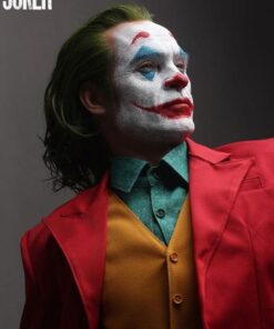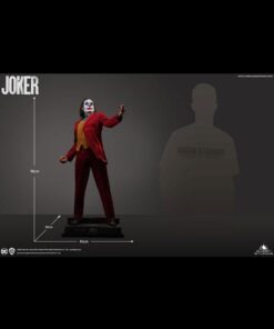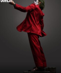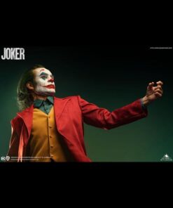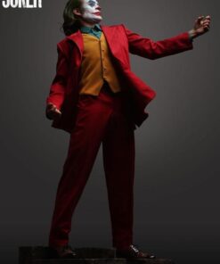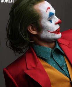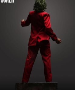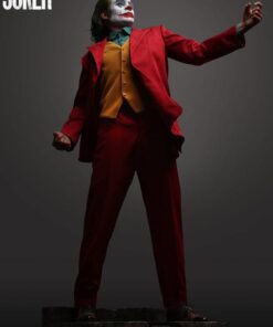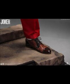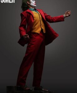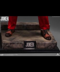As Arthur becomes “Joker”, he takes to the streets and dances his way to the late-night show “Live! With Murray Franklin”. To further celebrate this transformation. Queen Studios’ artist have chosen this staircase dance as the pose for the Joker 1:2 scale silicone statue. Fleck is stood mid-dance, lifting his left arm into the air, looking more contented than ever. Joker is wearing his now iconic royal red suit, goldbrick yellow waistcoat and a patterned blue shirt